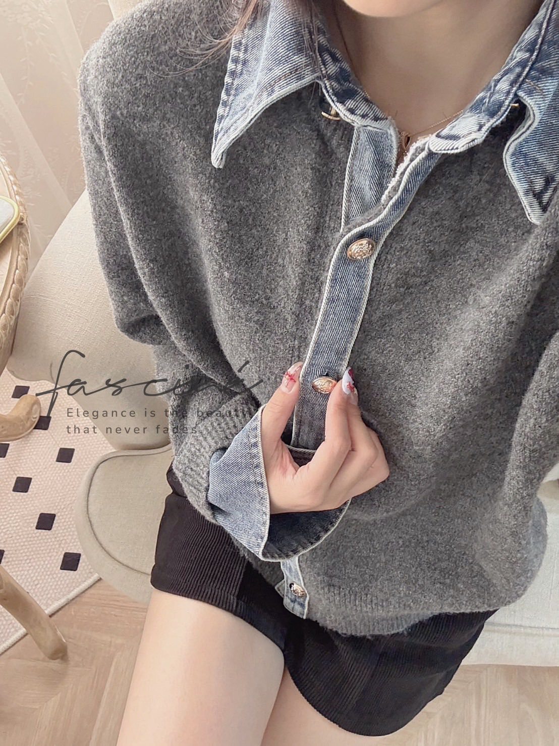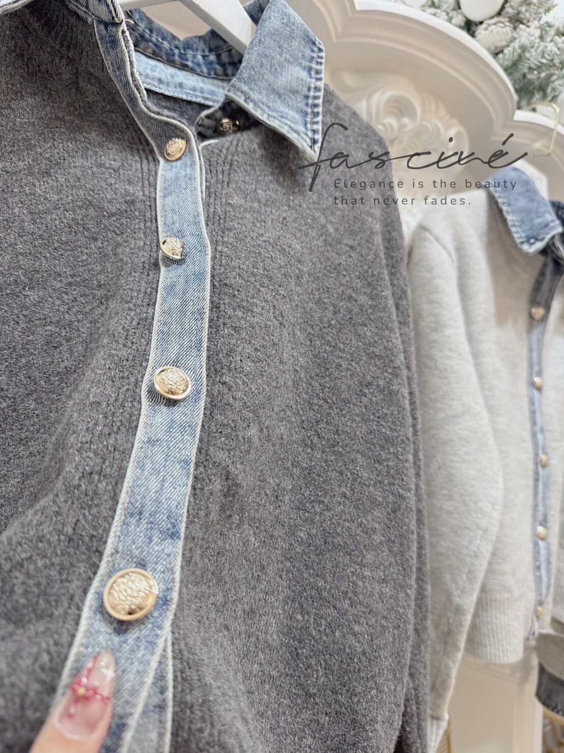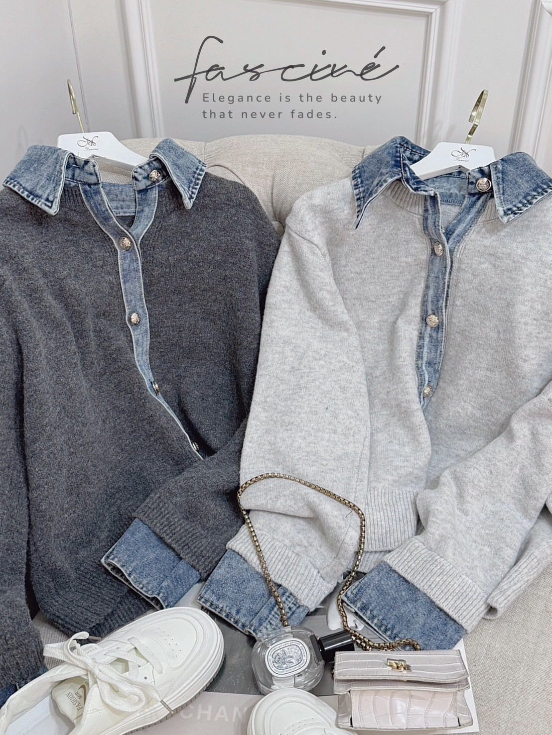 (12T43-25B) 法式高級感慵懶寬鬆時尚牛仔拼接顯瘦開衫上衣$590