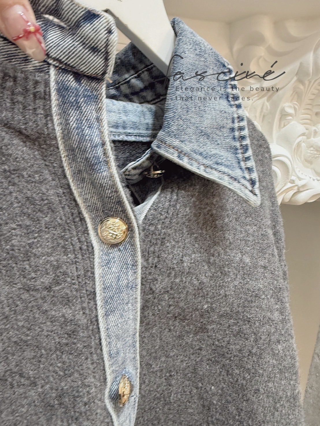 毛呢針織與復古刷色牛仔巧妙拼接,一件就穿出法式慵懶又有型的層次感,上身立刻自帶高級氛圍。微寬鬆短版剪裁修飾腰線與手臂線條,遮肉同時拉長比例,搭配金色質感排扣,低調中透出精緻細節。柔軟混紡面料親膚不扎,單穿當上衣或作開襟外套都好駕馭,通勤、約會、咖啡廳打卡一件搞定冬日氣質穿搭。