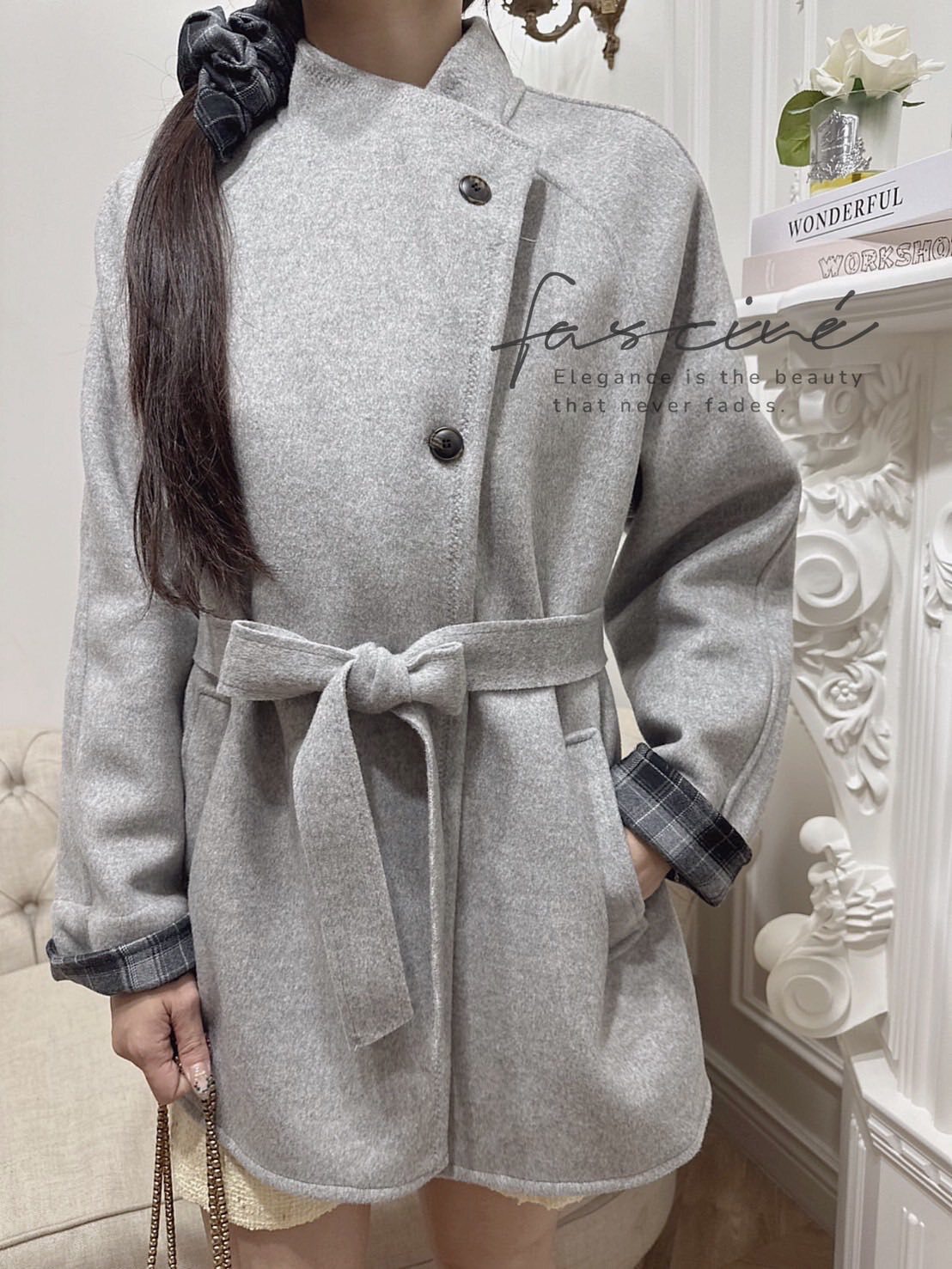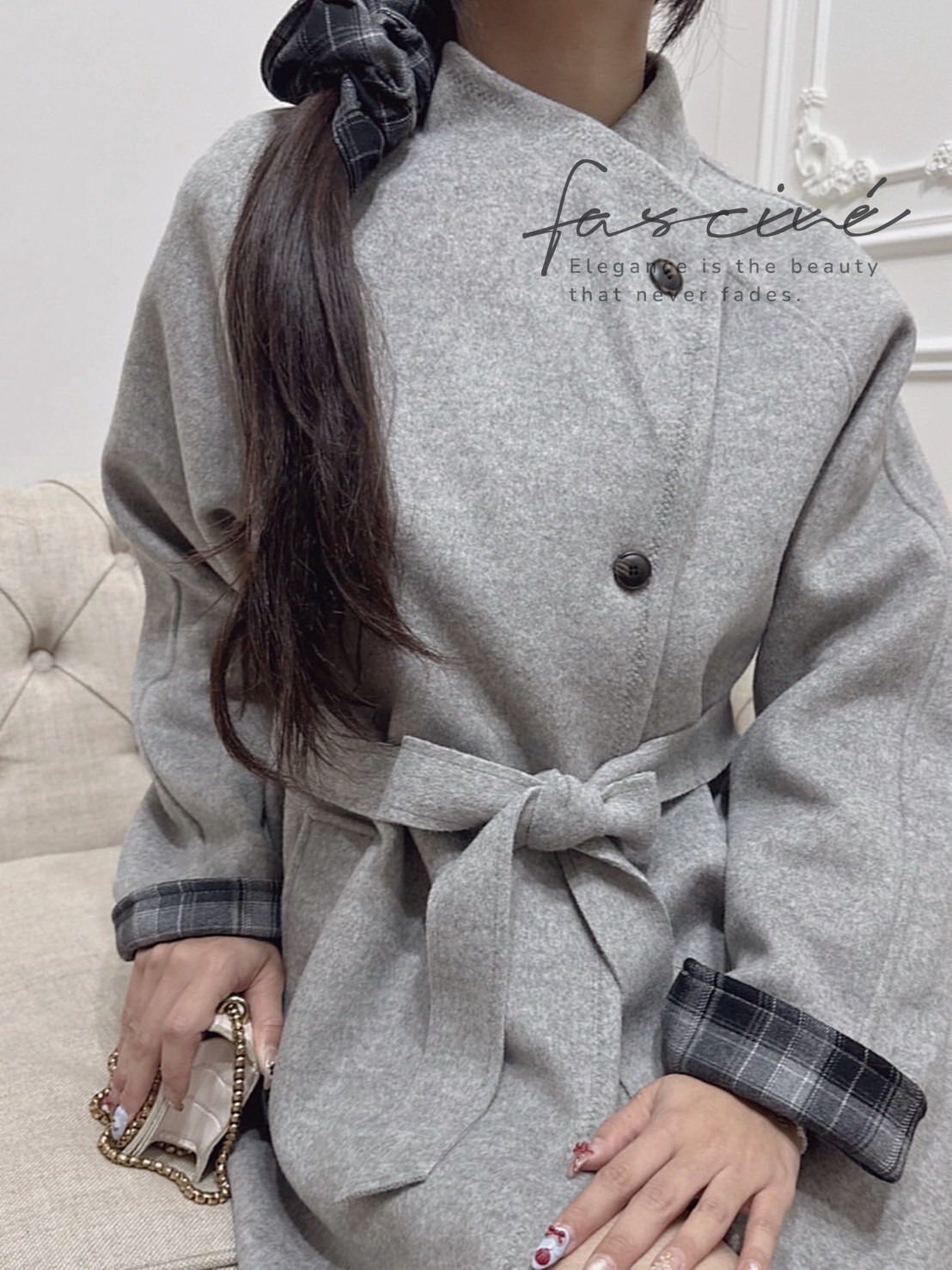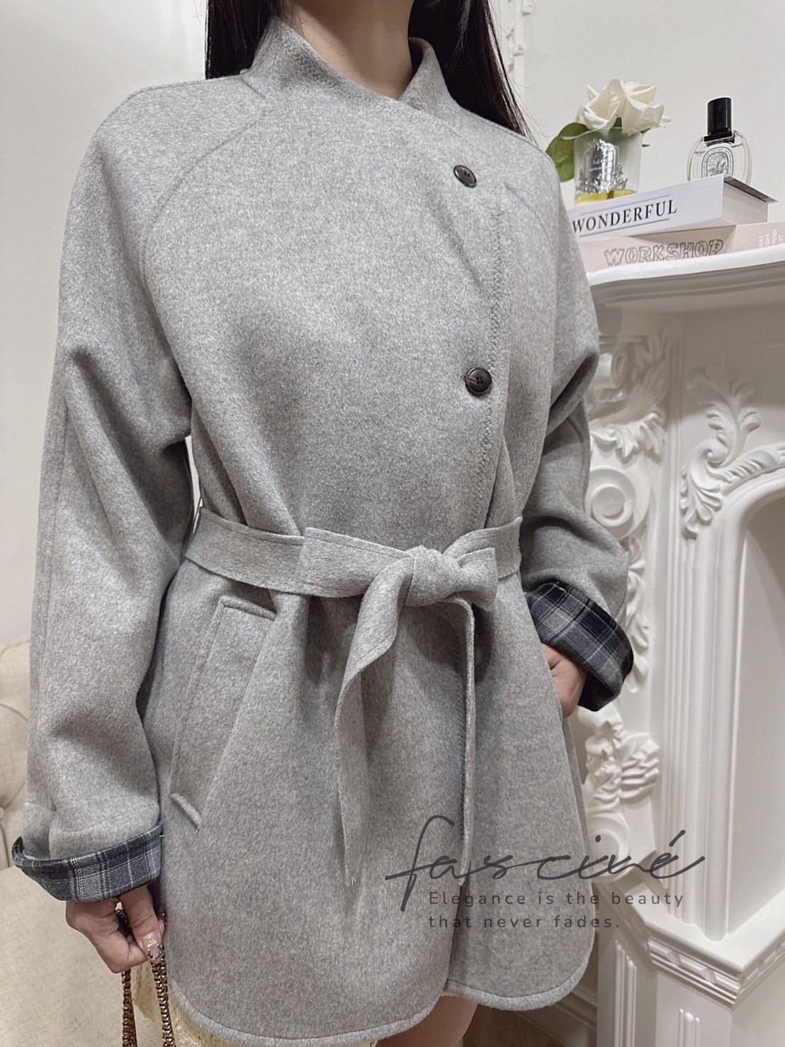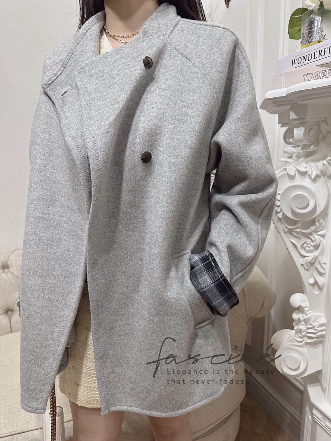 (12T06-25B)法式質感灰色收腰高級感寬鬆大衣$1480