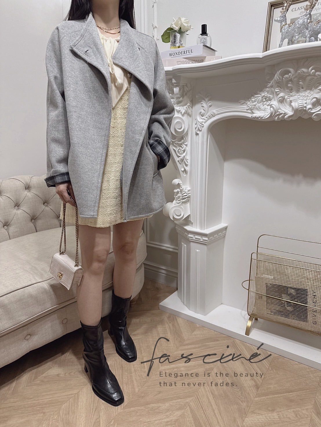 寬鬆版型包容身形、內裡好疊穿,翻袖露出低調格紋,更有層次的高級感通勤日常都能駕馭。