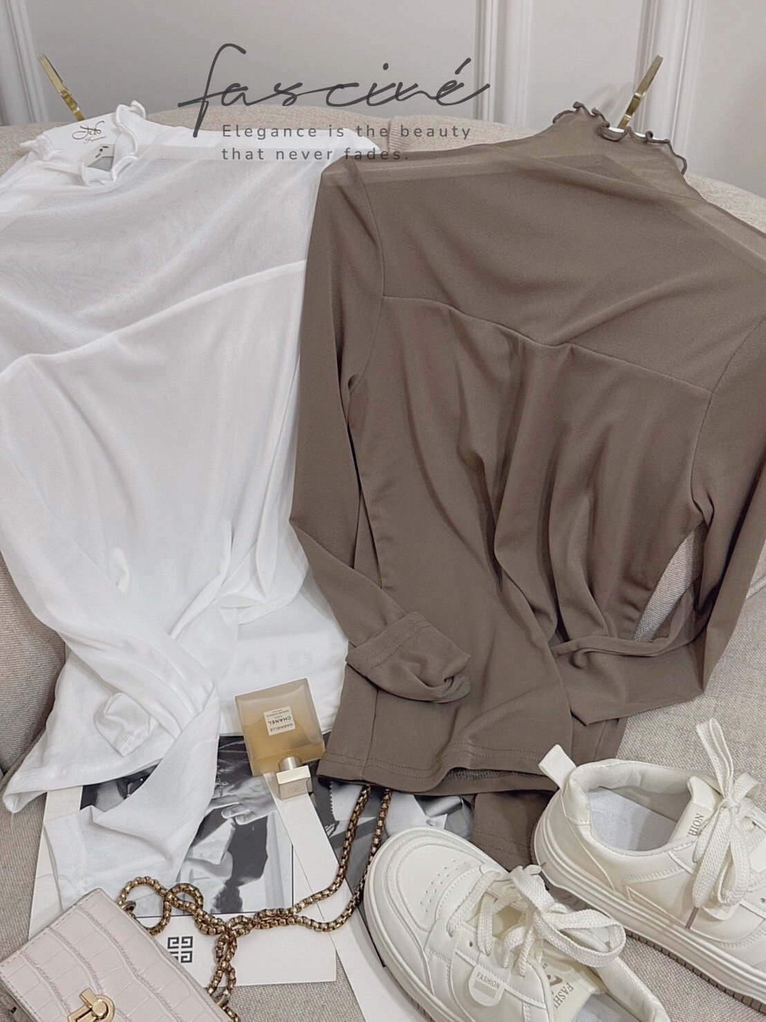輕柔透膚的雙層設計,將法式小性感與日常實穿完美平衡,一件就能為整體造型堆疊出空氣感層次,領口與袖口細緻木耳邊勾勒臉部線條,高彈混紡布料親膚不緊繃,單穿不害羞、內搭也不厚重。從通勤西裝外套到約會小香外套、背心洋裝,都是它的舞台,四色實穿百搭,絕對是秋冬衣櫃必收打底款。
